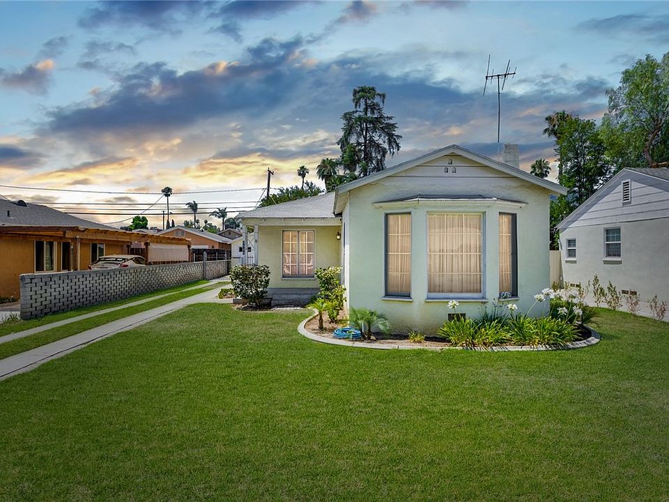 What a buy! You will feel at home the moment you walk in the door of this charming home in Palm Heights Historic district. Nicely landscaped with 3 bedroom 2 bath Main house that features gleaming hardwood floors, central AC and heat, and a cheery kitchen with diswasher, stove and refrigerator included. Spacious classic livingroom with lots of windows to let in the light, plus a cozy fireplace for relaxing on those chilly fall evenings. Enjoy the large formal dining room, inside laundry and all the charming features this beautiful home has to offer. Additional permitted 4th bedroom and bath are off the garage in the rear. Make sure to check out the bedroom and room in back. A Perfect opprotunity to convert to a full ADU for additional family members or extra rental income! Back yard is huge and compeltely landscaped and boasts a great covered patio perfect for grilling, entertaining and outdoor fun! Palm Heights neighborhood is perfect for walking to the Riverside Plaza, dinning and shopping and nearby schools. Must see to appreciate this gem!