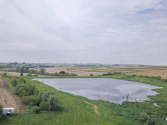 Country Home nestled on 16 +/- secluded acres! Enjoy summer nights fishing or swimming in your very own 6.5 acre private pond stocked with fish! A variety of established fruit, nut & evergreen trees line the property, plus 6.86 acres of income producing CRP reflect off the ponds edges to create a habitat for all kinds of birds & wildlife. While a proud original farmhouse windmill overlooks it all! Home features, 3 beds 1 Bath & laundry all on the main floor, updated kitchen, with a new dishwasher, patio doors off the living room, and large loft area that just needs finished to create more living space. 2+ Car attached garage, wrap around deck with ramp access. * Sold as is * * Additional 60 acres of crop ground can be purchased with the property totaling 76.96 acres