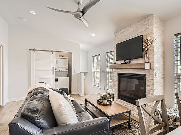 Stunning 2 Bedroom Carriage House Apartment in Hot Berkeley Neighborhood. Built in 2019, this 864 square foot carriage house apartment offers all the luxuries one could want while getting to live in the heart of a turn of the century Denver neighborhood. Large custom windows and vaulted ceilings in the main living area flood the open floor plan with sunlight! The living space includes a stacked stone gas fireplace, breakfast bar with seating, stainless steel appliances, luxury vinyl plank flooring and ample cabinet storage. The apartment features 2 bedrooms and a spa like bath with glass walk in shower. A private gated entrance with flagstone patio makes a perfect space for relaxing on a summer evening or cooking on the grill! Walk to the shops and restaurants on Tennyson St, Rocky Mountain Lake Park, Berkeley Park and all that NW Denver has to offer! Minutes to I-70, I-25 and Downtown Denver. The property is furnished and includes all utilities, wireless internet and cable TV. Washer and Dryer are in the unit.