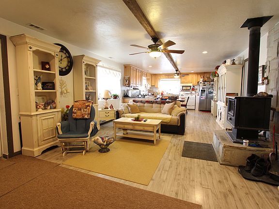 Welcome to your peaceful retreat in beautiful Snake Valley. This recently built home showcases a spacious open floor plan with high-quality finishes and superior craftsmanship throughout. The home was constructed using a double-wall construction method, providing exceptional insulation and energy efficiency, which helps maintain comfortable temperatures year-round while keeping utility costs low. The inviting family room is centered around a stunning wood-burning stove, creating a warm and cozy gathering space, while abundant natural light highlights breathtaking mountain views and surrounding wildlife. The property is fully equipped with a septic system, private well drawing directly from the aquifer, propane heat, satellite TV, and newly installed fiber-optic internet offering speeds up to 1 Gbps. Outdoor amenities include an impressive 40x60 detached red garage and shop on a permanent foundation, complete with a built-in hoist and wood-burning stove, making it ideal for projects, storage, or recreational equipment. Additional sheds and select personal property are negotiable, including the 14x20 and 10x30 sheds and some furniture. This location is surrounded by some of the region's most remarkable natural attractions. Great Basin National Park is a short drive away, offering world-class stargazing and dramatic landscapes. Crystal Ball Cave features striking stalagmites and stalactites and is a beloved local destination. Spring Mountain is known for its natural warm springs, creating a rare desert oasis, while Devils Gate Canyon offers scenic hiking and geological beauty. This turnkey property offers a rare opportunity to own a beautifully improved, energy-efficient home in one of Utah's most peaceful and adventure-filled regions.