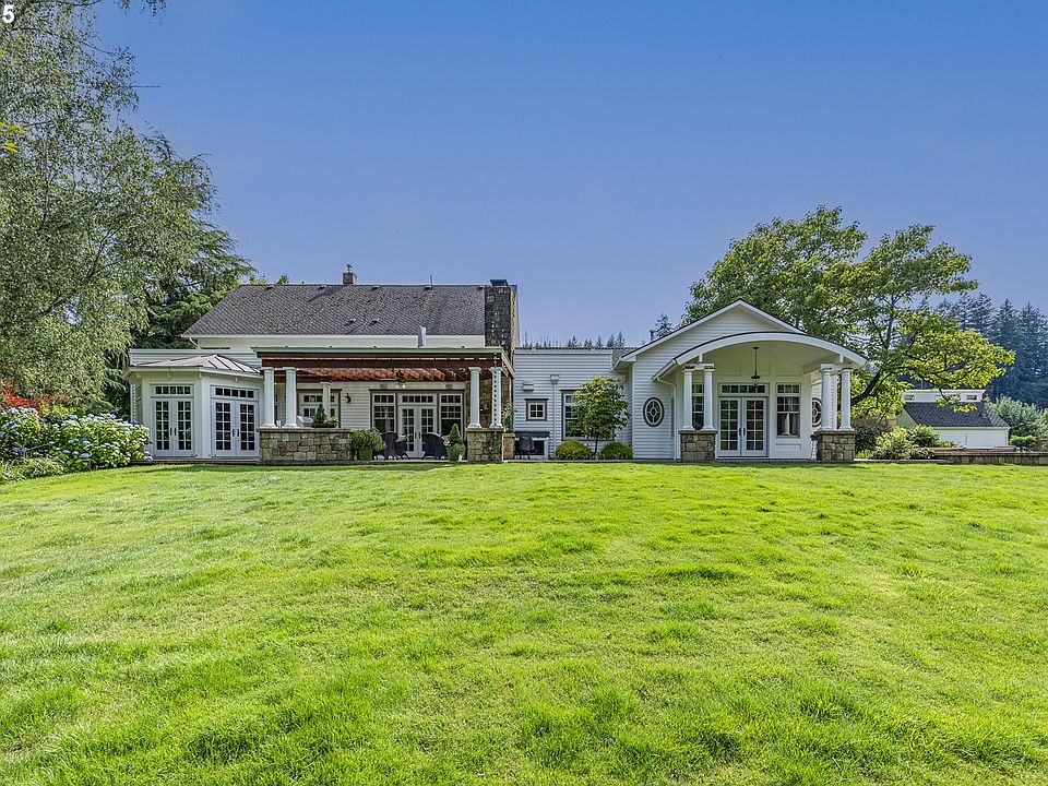 Barking Trout Farm Estate offers a rare 5-acre retreat on the iconic McKenzie River in Vida, Oregon. This gated, Cape Cod-style residence has been thoughtfully updated and positioned for maximum privacy, serenity, and functionality. The stylishly curved driveway leads across a private bridge to a peaceful meadow setting and a classic New England-inspired home that sits discreetly back from the road. The riverfront location provides captivating whitewater views, best enjoyed from the primary suite, private deck (grandfathered in, as no new decks are allowed), or the upstairs balcony at sunset. Inside, the dream kitchen features deep granite counters, a 6-burner range with griddle, double ovens, warming drawer, prep sink, and breakfast nook. Designed for entertaining and everyday ease, the home includes a formal dining room with fireplace, cozy library, covered patio with an outdoor fireplace, a speaker system, and five bathrooms, including a charming powder room off the library and a utility-focused half bath near the laundry room. The spacious primary suite is a standout, offering sweeping river views, French doors, oversize closet, custom built-ins, and a luxurious bath with steam shower and jetted tub. Comfort meets utility with a 40x80 heated shop that offers ample space for tools, vehicles, and equipment, along with a powerful 40kW backup generator and a 500-gallon diesel tank for reliable energy and equipment use. Additional features include a wood-burning fireplace in the den with a wood-loading station, preserved architectural elements from the original 1976 structure, an architect-redesigned staircase, a greenhouse and fenced garden for year-round growing, thoughtful landscaping with aspen groves, and an exceptional neighborhood known for its sense of community. Whether you're sipping morning coffee while watching the river or enjoying a summer evening with friends on the deck, this property is a sanctuary designed for beauty, security, and lifestyle.