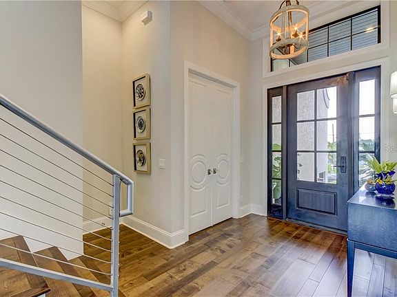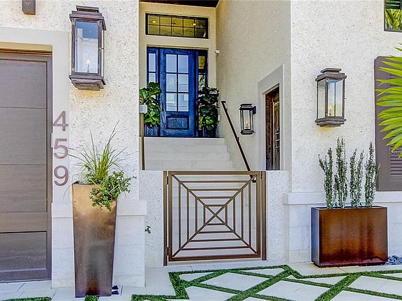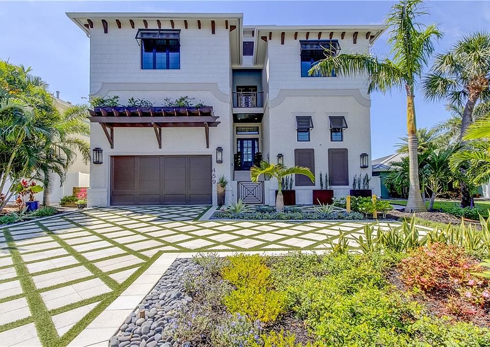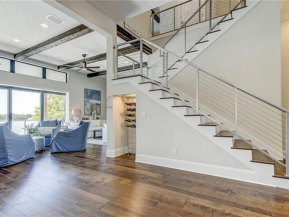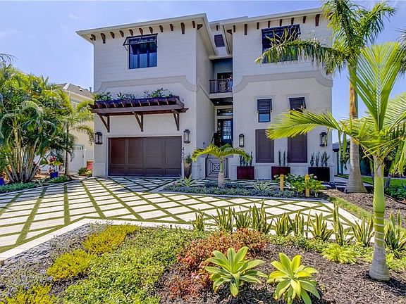 Absolutely STUNNING waterfront home with WIDE OPEN WATER VIEWS ALL THE WAY TO THE INTRACOASTAL. This magnificent home was COMPLETED IN 2019 and features every quality detail and upgrade imaginable. Solidly constructed on concrete pilings with concrete block from the ground to the metal roof, this home was built to last. The British West Indies vibe with lush landscaping, an artificial turf and stone patterned driveway, and GAS LANTERNS give this home a distinctive look. The interior is appointed with dark, multi width wood plank flooring, decorative beams, a brick accent wall and direct views out to the open water. Light, bright and coastal chic, the look is spot on with today's latest and best design elements. The kitchen is equipped with Wolf and Subzero appliances including a 48" gas range, 2 dishwashers, a Wolf drawer microwave and separate Subzero refrigerator and freezer. A true cook's delight with a massive center island, quartz countertops and elegant cabinetry and tile. There is a fabulous walk in pantry with open shelving and an additional refrigerator. Pocketing sliding doors lead from the family room out to the main level covered balcony equipped with a pool bath, outdoor kitchen and a seating area accented with a unique vertical gas fire feature. Stairs lead down to the salt water pool and heated spa highlighted with a multi-colored fire pit and bar. The dock will accommodate up to a 40' boat and is equipped with electric and water. Unobstructed, quick boating access to the Intracoastal and the Gulf of Mexico. Back inside the home the stairway to the second level has stainless steel cable railing for a sleek contemporary look. The master bedroom is oversized with space for a seating area and features an electric fireplace and outstanding open water views. Two walk in closets (with built in organizers), a spectacular spa-like master bath featuring a free-standing tub and an oversized walk in shower with 4 shower heads. Each of the other two bedrooms is generous in size and feature walk in closets with organizers. The bonus room is appointed with a custom made hammered copper bar top, brick backsplash, beverage fridge, sink and ice maker. Sliding doors from the bonus and master lead out to the upstairs covered balcony which provides another excellent vantage point to take in the sweeping water views. The laundry room is conveniently located on the second level with the bedrooms. The home was designed with a specific space for a future elevator. Other features include 2 gas tankless water heaters, plantation shutters, crown molding, custom tile flooring in all bathrooms, laundry room and pantry, designer lighting.....the list is endless. This is a smart home with apps for the pool, a/c systems, lighting, security and more. In addition to the 2 car garage there is a ground floor 16'X8' storage room/workshop. Incomparable location, just a short walk or bike ride to the pristine white sands of Indian Rocks Beach and the Gulf of Mexico. Enjoy the many nearby restaurants... life at the beach is simply the best!