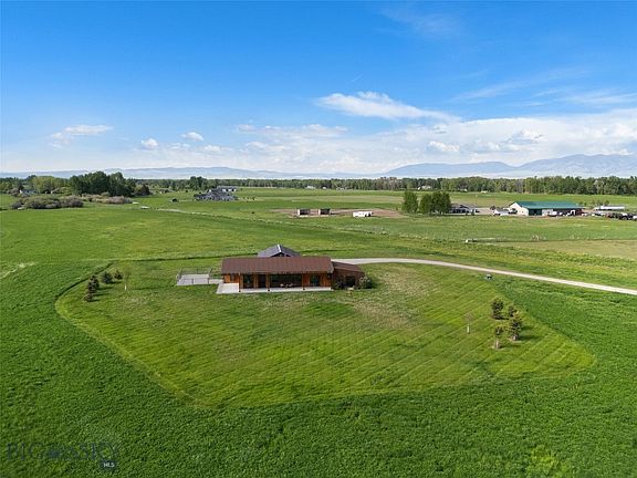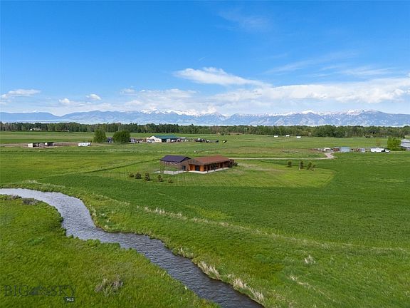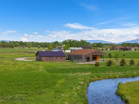 Discover the ultimate Montana lifestyle on this remarkable approximately 23-acre sanctuary, just 20 minutes from vibrant downtown Bozeman and Montana State University. Experience a renewed appreciation for life as you soak in the breathtaking views of the Bridger and Spanish Peaks mountain ranges. Designed by Henri Foch for the renowned Bozeman firm Intrinsik Architecture, this stunning property borders Lewis Irrigation Ditch, that is picturesque and lively as a stream, creating a peaceful setting that also serves as a haven for diverse fish and wildlife.