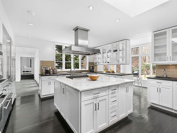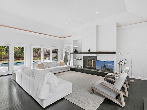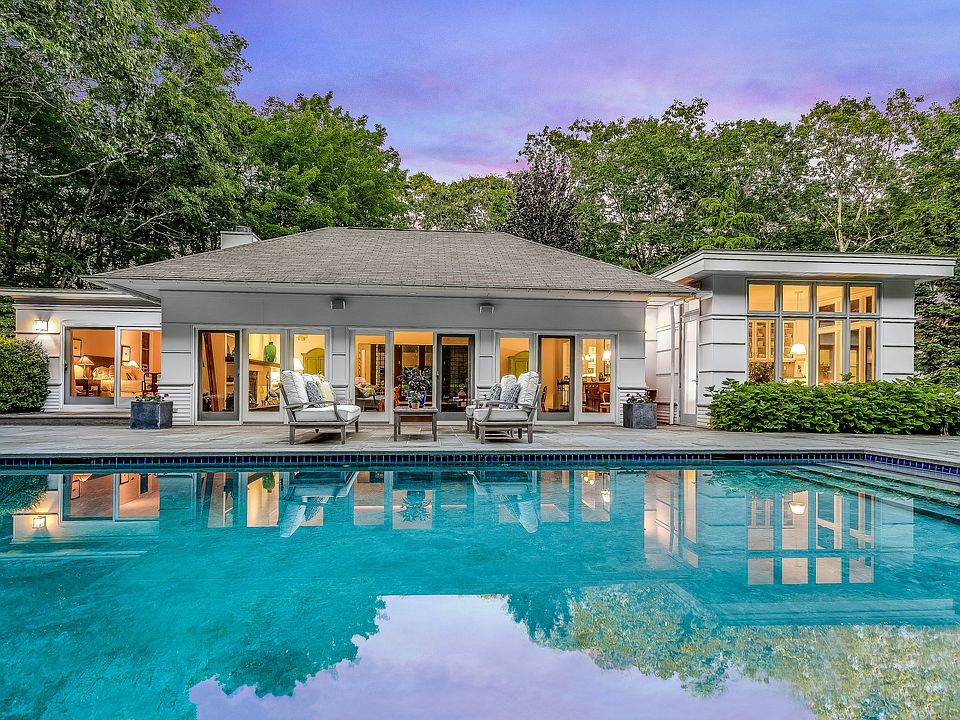 Centrally located between Bridgehampton and Sag Harbor village, this light-filled modern home is the ideal summer getaway. The massive great room and dining area with French doors leading to the outdoor terrace and the large gourmet kitchen with sunny breakfast room are ideal for entertaining. Delight any serious chef with its marble-topped island, dual fuel Wolf range, 3 part stack Thermador wall ovens, side-by-side twin Sub Zero's and, dual Bosch dishwashers. Private and spacious, there are four ensuite bedrooms, with two large primary bedrooms on either side of the home. Bordering an 11-acre preserve and sited on a shy two acres, the backyard is secluded and peaceful. Whether you are relaxing by the 40-foot heated gunite pool, or enjoying the beautiful grounds and mature gardens, this home is sure to impress.