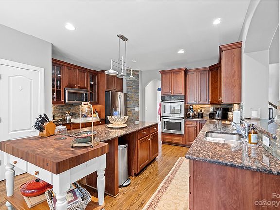 Spacious 4245sq ft all-brick home with a well-thought-out floor plan, stainless steel appliances, a generous kitchen, and dining area, this home is perfect for your family. The primary bedroom on the main level features a dual-sided gas fireplace. Upstairs, the second bedroom has a full bath, and bedrooms three and four share a Jack & Jill bath. Ample closets, bullnose corners, and fresh paint throughout. Enjoy a large bonus room with a wet bar and main-level laundry with a utility sink. Enjoy morning coffee on the covered side patio beside breakfast area. The insulated three-car garage has a side entrance door and ceiling fans. Step outside to a spacious back patio and a sizable backyard with a stone fire pit. This well-maintained home is in the peaceful Greenbay Forest community, bordering Lake Norman, offering walking trails and a 17-acre natural area. Neighborhood is great for dog walking/exercising. Windows and gutters recently professionally cleaned. Your dream home awaits!
