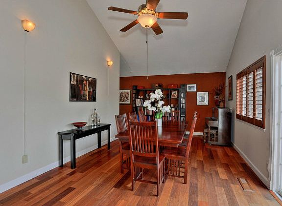 OPEN FLR PLAN,HIGH CEILINGS,RICH BRAZILIAN CHERRY HARDWD FLRING,GRANITE KITCHEN COUNTER TOPS,MAHOGANY CABINETRY,GAS STOVE,GREAT RECESS LIGHTING,CEILING FANS-COMFORTABLE AND LUXURIOUS!MASTER BEDRM IS CONVENIENTLY LOCATED DOWNSTAIRS, OTHER 3 BEDRMS,OFFICE ARE UPSTAIRS.GORGEOUS BACKYARD:KITCHEN+DINING PATIOS,SPORTS CORT,STAMPED CONCRETE,FRUIT TREES!PARK,101.SCHOOLS:S.TERESA,BERNAL,OAK GROVE.OH SUn