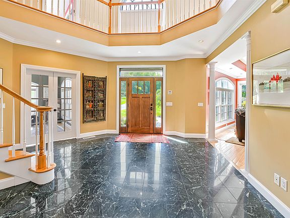 Set in Williston’s sought-after Highlands Drive neighborhood, this stately residence offers more than 8,300 sq. ft. of finished living space across three levels, blending timeless character with modern comfort. The gourmet kitchen features granite countertops, a Sub-Zero refrigerator, Viking range and wall ovens, and butler’s pantry, while west-facing windows frame sunsets over Lake Champlain and the Adirondacks. Formal dining is enhanced by a tin ceiling and fireplace, complemented by a parlor, main-floor office, and soaring great room with 20-ft ceilings, abundant windows, fireplace, wet bar, and built-in sound system. In all, the home boasts three wood-burning and two gas fireplaces, bringing warmth and character to its grand spaces. Upstairs, the expansive primary suite is purposely positioned to capture the western views, with dual walk-in closets, tiled shower, his-and-her vanities, a fireplace, and private balcony overlooking sunsets and the twinkling lights of Williston and Burlington at night. Three additional bedrooms and two full baths complete the second floor. The walk-out lower level includes a billiards room, tiered home theater, family room, bedroom, full bath, and updated mechanicals. Outdoors, a sweeping back deck with spacious seating extends from the dining room. With a 3-car garage and access to nearby community walking trails, this exceptional property offers scale, luxury, and neighborhood appeal for both entertaining and quiet retreats.