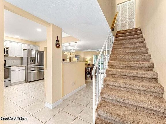 Escape to serene coastal living in this remodeled two-story townhome with water views & your own private garage. Step inside to find a bright, open kitchen complete with stainless steel appliances & quartz countertops. The inviting living room flows effortlessly to the back patio perfect for sipping morning coffee, unwinding in the evening, or entertaining while overlooking the tranquil water. Upstairs, you'll find two spacious bedrooms, each with its own private balcony offering peaceful waterfront views. This sought-after community provides direct access to a navigational canal, making it easy to explore the surrounding waterways. Spend your days relaxing by the sparkling community pool, enjoying friendly matches on the tennis or basketball courts, or simply taking in the picturesque surroundings. Ideally located, this townhome offers easy access to I-95, and is just minutes from the Space Force Base, beautiful beaches, shopping, dinning and great schools!
