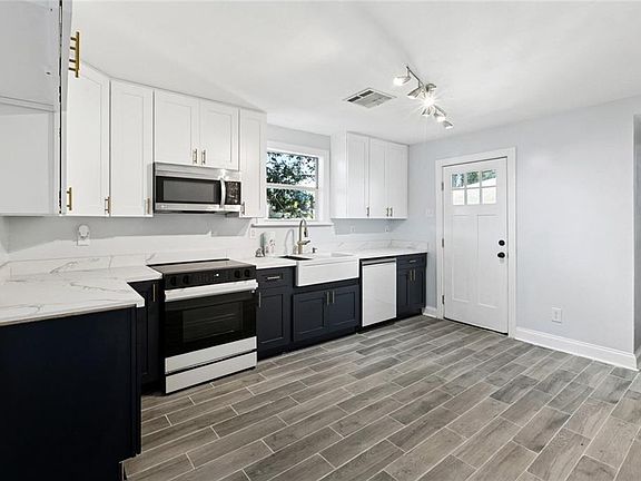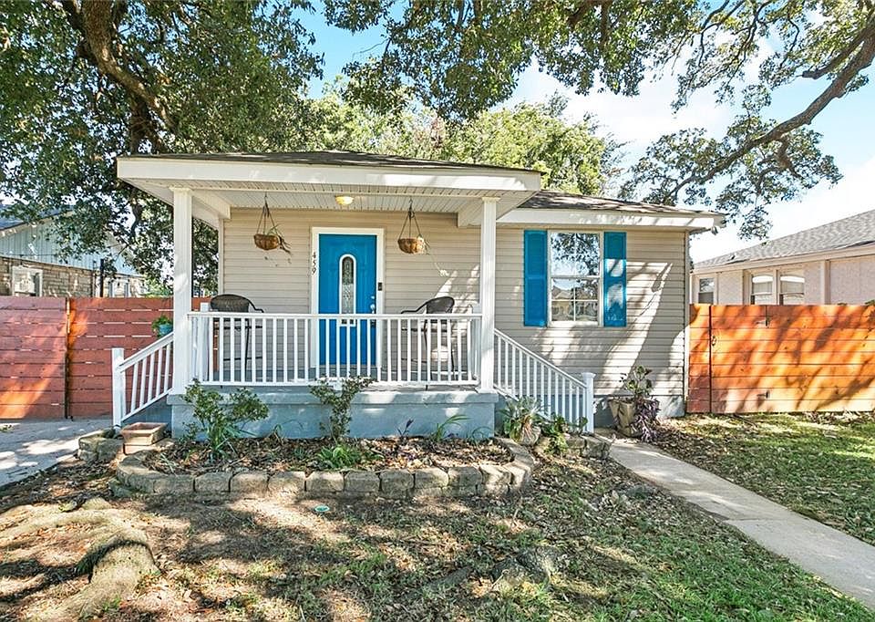 CHARMING COTTAGE WITH BONUS ENTERTAINMENT SPACE — FLOOD ZONE X! Nestled on a quiet street in Harvey, this beautifully updated 3-bedroom, 2-bath home combines classic cottage appeal with modern comfort. Step inside to a bright and inviting living area featuring neutral tones and durable wood-look tile flooring throughout. The kitchen, remodeled in spring of 2025, shines with stylish two-tone cabinetry, sleek quartz-style counters, gold hardware, and a farmhouse sink—perfectly blending design and functionality. Each bedroom offers comfort and natural light, while both bathrooms feature granite vanities and updated finishes. Out back, discover a spacious detached bonus room with French doors, ideal for a home office, gym, or entertainment lounge. The private, fully fenced yard offers plenty of space for gatherings beneath the shade of mature oak trees, along with a large storage shed for added convenience. Additional highlights include off-street parking, gated side access, energy-efficient windows, and a peaceful setting in Flood Zone X (no flood insurance required). This home delivers exceptional value, charm, and versatility—schedule your showing today!