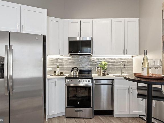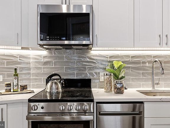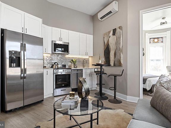 Nestled in the heart of Mount Vernon, this charming 1-bedroom, 1-bath condo offers a rare opportunity to live in a beautifully preserved Victorian building (completely renovated in 2022!) with modern updates throughout. The striking red brick exterior, complete with classic turret detailing, sets the tone for the character found inside. The interior features a thoughtfully updated kitchen with stainless steel appliances, crisp white shaker cabinets, designer tile backsplash, and under-cabinet lighting. High ceilings and oversized windows fill the open living space with natural light, creating an inviting and airy atmosphere. The bedroom is both elegant and unique, featuring a curved bay window with stained glass details and refined period trim. The bathroom is sleek and contemporary, showcasing a glass-enclosed walk-in shower, marble-inspired tile, and a floating vanity. Located in a pet-friendly boutique community just steps from shops, dining, and cultural landmarks, this residence blends timeless architecture with the convenience of downtown living.