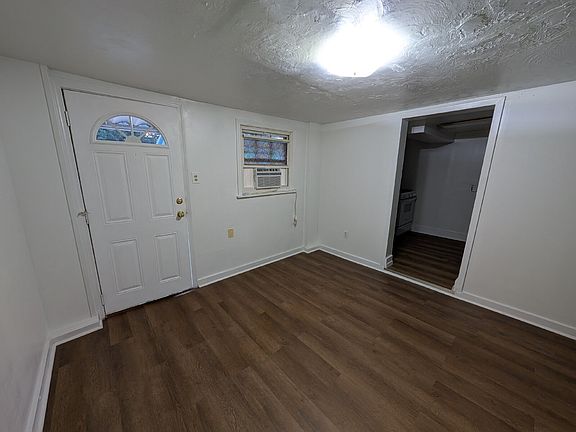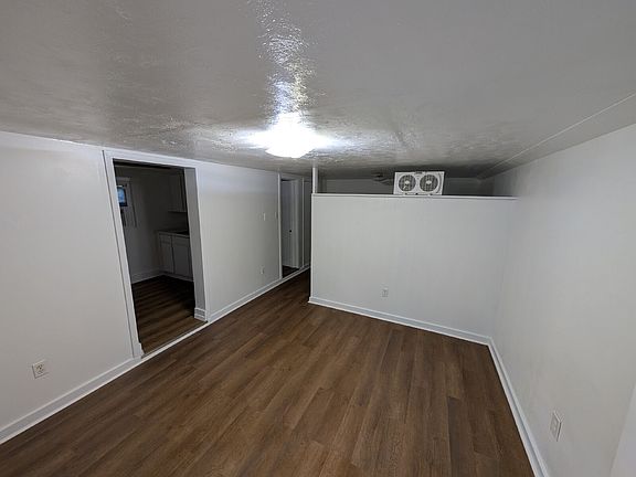 This 1 bed efficiency has a half wall that separates the bedroom from living room. Has a full kitchen and bathroom. Includes power, trash and water.