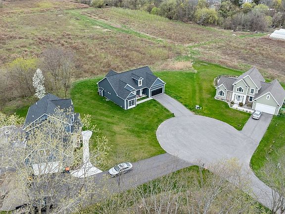 Incredibly rare Custom Built (2021) ranch home in Irondequoit sits at the end of a low-traffic cul-de-sac and features 3 bedrooms, 2 bathrooms, 1,636 square feet and modern upgrades to love. Just 2 miles away from Irondequoit Bay and close to Lake Ontario, enjoy open first floor living w/ 9 foot ceilings and a sprawling kitchen offering gorgeous quartz counters, a large island w/ breakfast bar, stainless steel appliances, custom cabinetry, gas oven w/ range and a walk-in pantry. The kitchen, living room and dining area are open to each other and flow together w/ luxury vinyl flooring throughout. The exceptional main bedroom suite offers a large walk-in closet, stylish bathroom w/ double sink vanity & frameless glass shower w/ easy entrance & a show-stopping jade-colored shower backsplash. The living room has tray ceilings, a modern gas fireplace & scenic views while the dining room has a sliding glass door leading to the covered back deck. First floor laundry room & mud room w/ door to the 2-car attached garage. 3 first floor bedrooms. Full basement w/ 9 ft ceilings & egress windows adds 1,000+ sq ft for activities or to be finished. Delayed negotiations start 5/2/24 at 3pm.