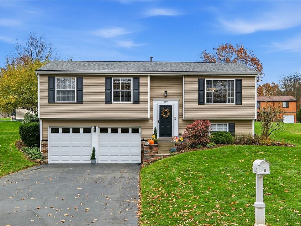 Welcome to 459 Partridge Run, an updated & well maintained 3 bed, 2.5 bath home in Deer Lakes SD. You're going to love the brand new luxury vinyl flooring, new carpet, & fresh neutral paint: simply unpack & enjoy the holidays! Bright & open family room w/ recessed lights & 2" blinds. Dining room opens to the fully equipped kitchen w/ plenty of counter space. Owner's suite features custom wardrobe, double closets, & private bathroom w/ WI shower. Two bedrooms share the hall full bathroom w/ ceramic tile flooring. Plenty of closet space. The basement family room is spacious & includes custom built-in bookcases, half bathroom, & laundry. Open the slider & enjoy the backyard under the pergola. A second outdoor living space with pavers, raised flower/garden beds just a few steps away. Beautiful grassy yard perfect for outdoor recreation. Large shed. Flat paved driveway & 2 car garage. Easy access to Route 8, Turnpike. Checkout the 3D virtual tour, floorplans, & video walk thru in LINK.