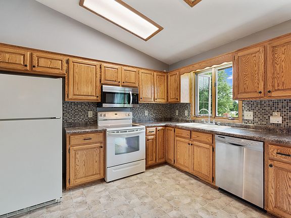 Welcome to this great split bedroom ranch located in the heart of Kewaskum. Spacious living room with vaulted ceiling opens to a large eat-in kitchen with lots of cabinets & light overlooking the beautifully landscaped backyard. Sit out on your deck while listening to the calming sounds of your custom water feature. Enjoy evenings on your covered front porch. Expand the lower level for more living space.