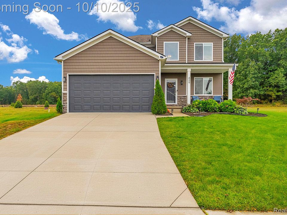 Welcome to your new home in the desirable Gardens of Riverside! Built by MI Homes, this property sits on a spacious lot with a paved trail at the end of the street leading to the community play structure and river access! The lot next door is maintained by the HOA and not buildable. Step inside to a stunning two-story entryway, dinning room upgraded with double step ceiling and open concept throughout with 9ft ceilings. The kitchen is beautifully finished with an elegant backsplash, granite countertops and a new RO system. A new well pump was installed earlier this year and is also connected to the sprinkler system while the home is connected to city/ sewer. Upstairs, you’ll find all 4 bedrooms, including a serene primary suite with ensuite bath and walk-in closet. The laundry room is also conveniently located on the second floor. The finished basement adds additional living space complete with vinyl flooring, a 5th bedroom, egress window, and materials ready for a future bathroom project! The insulated garage comes equipped with an EV charger, Bluetooth-enabled opener, epoxy floors, and plenty of room for storage. Outdoor upgrades include security cameras, plus a 420 junction box ready for a hot tub or pool. This home truly has it all- modern comforts, thoughtful updates, and unbeatable community features just waiting for your personal touch!