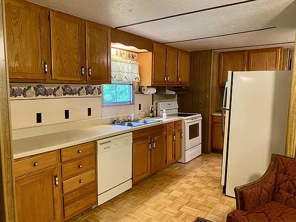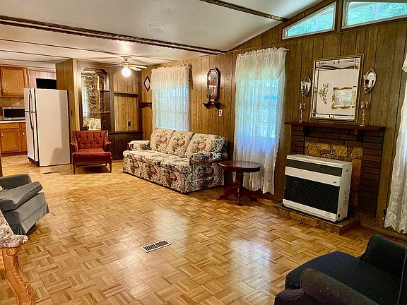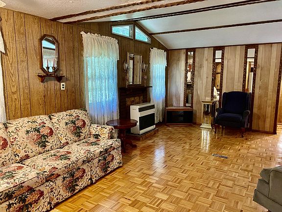 This 1978, 2 bedroom, 2 bath singlewide sits on 1.46+/- acres and is in above average condition. It features a new large covered rocking chair front porch overlooking fast moving Simerly Creek and a mostly level 3/4 +/- acre yard. It has newer hardwood floors throughout, a newer oak kitchen with all appliances to convey with sale of home. There is a newer metal roof and an attached 2 car carport. Property is zoned A-1 and has super low Carter county taxes. The home is on city water and power, and has a septic system. There is a 4 car gravel driveway and a spring head with a 1,000 gallon spring box on the property but it is NOT in use, and probably needs some work. There is also a second untapped spring on the property. NONE of the property is in a flood zone. NO flood insurance needed. Because of the age of the home this is a CASH ONLY transaction. Property being sold AS IS, WHERE IS. Inspection for information purposes only. There is a 13x20 outbuilding with an attached carport, and a 8x11 yard barn. Third outbuilding for storage, two of the outbuildings have power.