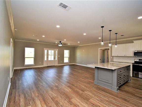 This new construction 3 bd 2 ba open floor plan is complete & ready for it's new owner. You'll love the lot the home is situated on boasting 1.1 acres with beautiful views of evening sunsets. Gray Stone Ext Subdivision is located in Rapides Parish and tucked away with so much privacy and a great place to get out and enjoy your space. It is so accessible to everything. Just hop on Hwy 167 and find a quick trip to shopping, etc. This home has an amazing kitchen with stainless appliances, an abundance of custom cabinetry and beautiful granite countertops. There is a pantry, and the breakfast bar is a wow factor when walking into the home The owner's bedroom offers an on-suite that is so serene and spa like, with the beautiful custom tile shower, large soaking tub, and double vanities. The walk-in closet is massive. The two additional bedrooms are much larger than most new construction homes you find today. There is a well-designed hall bath with granite vanity.