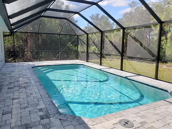 Under Construction. "Under Construction" - this beautiful new pool home will be completed in approx. 120 days. The Seabreeze Model is a wonderful home design encompassing 3 bedrooms, 2 baths, and a 2-car garage across 1,606 sq. ft. of living space. The open kitchen includes a walk-in pantry, spacious island, breakfast/dining area, and sliding glass doors leading to the lanai. The master bedroom includes a walk-in closet, corner shower, and dual sink vanity. The remaining 2 bedrooms are located by a secondary bath which includes a shower/tub combo. The home features cathedral ceilings, tray ceilings, wood look tile throughout, granite countertops in the kitchen and bathrooms, recessed lighting, ceiling fans in every room, stainless steel appliances, paver pool deck, and aluminum pool screen cage. The home comes with hurricane/storm shutters. There is no wasted space in this home as it was designed for the discerning buyer who is looking to live the Florida lifestyle. Stop by today to see this beautiful home!