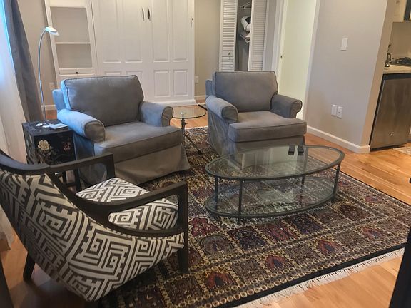 Furnished with deskSmall kitchenetteHandmade oriental carpetBeautiful hardwood floorsAdditional storageFull size refrigeratorWasher and dryer