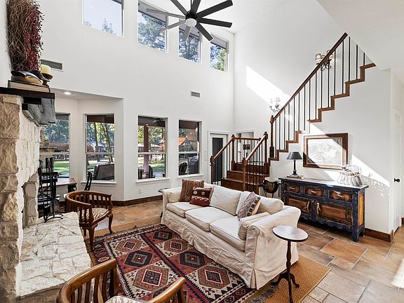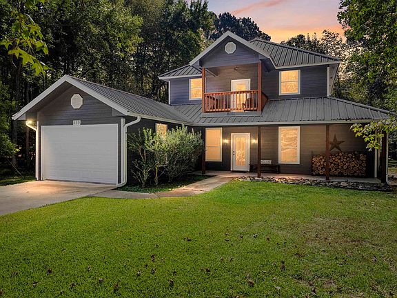 Wonderful opportunity to own a slice of Heaven on one of the most beautiful lakes in Texas! This 4 bedroom 3 bath waterfront home boasts a two acre site with beautiful mature trees and easy walk to two stall boathouse w/ expansive sundeck. Additionally enjoy relaxing on the large flagstone patio with outdoor rock fireplace right outside the backdoor. This lakeside retreat is the perfect size for you, your family and additional friends. 3 bedrooms and two baths on the main floor and upstairs is the second living, bedroom and bath. Kitchen can accommodate multiple cooks and includes soapstone countertops, pantry and stainless appliances. Laundry room, 1 car attached garage and pet bathing station room at additional lakeside door. Tucked just off main lake and waiting for new memories to be made! Most furnishings will convey!
