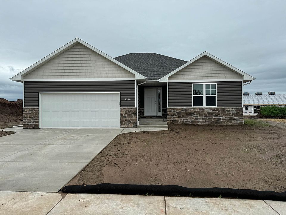 New construction ranch in the Village of Howard! Home features an open concept 1,512sf floor plan w/ 3 bdrms & 2 full baths. Walk into the foyer leading to LR w/ lrg window looking out to the backyard. Kitchen features custom maple cabinets, built-in pantry, island overlooking the LR, SS dishwasher & microwave. Master bdrm w/tray ceiling features a lrg walk-in closet & private full bath w/ walk-in shower. Convenient 1st-flr laundry room off the 2-stall att. garage. Full bsmt w/ egress window & is stubbed for a future bath. Exterior features horizontal siding, shakes in roof peaks, & stone per plan. Virtual staging in photos.