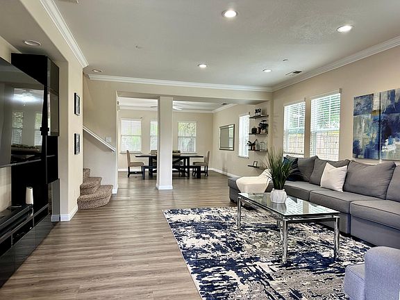 Welcome to our inviting home located in the desirable La Rivera gated community. Situated on a peaceful cul-de-sac, this family-friendly residence is perfect for those seeking safety and convenience. The first floor features a fully renovated open concept layout, with new luxurious vinyl flooring throughout. The kitchen is a great highlight, featuring modern upgrades such as a built-in spice rack, stunning quartz countertops with a full quartz backsplash, and a stylish waterfall kitchen island, perfect for entertaining or for a bigger family. The spacious master suite includes a large walk-in closet and en-suite bathroom. The home is equipped with dual-pane windows, a whole house fan, and solar panels. Being smart-home ready ensures ease, comfort and energy efficiency. The low maintenance backyard is a tranquil space to unwind. Additionally, the garage has a charging port for electric vehicles. The community's HOA provides security and it offers delightful amenities like a large sparkling pool, jacuzzi, tot lot playground, and clubhouse. Conveniently located only 3 miles from Downtown Riverside, has easy freeway access and in close proximity to UCR, this home provides seamless connectivity. The estimated move-in date is September 1, 2024. As the owner, I cover the HOA fees and gardening maintenance fees while the renter is responsible for all utilities but with a minimal electric fee due to the solar panels. To secure this fantastic opportunity, the first month's rent and deposit are due at signing. Please note that smoking is not allowed. We warmly invite you to make this wonderful residence your new home. The home currently has the living room couch, dining set and entertainment set in place. You can continue to have these in the home or we can remove it if you are bringing your own furniture for these areas. Minimum 12 months lease term from 9/1/2025 to 8/31/2026. First month's rent and deposit due at signing. Tenant pays for own utilities including water, gas, electricity, trash and internet. Fur babies are welcome and we would love to meet them! $250/pet pet deposit. Two-car garage with two-car driveway for parking. Street parking is available with a permit, which is provided. No smoking. $35 per adult application fee. Renter's insurance recommended.