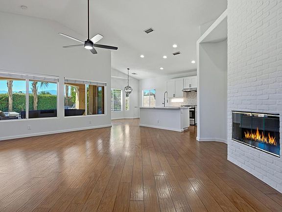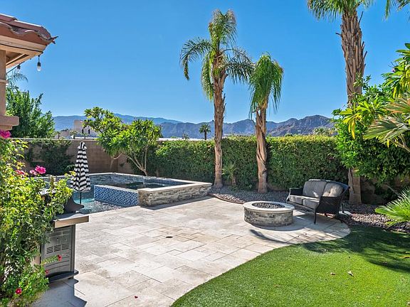 Discover an unparalleled lifestyle in the highly sought-after Indian Springs golf course community. This exquisite residence, boasting 3 bedrooms and 2 bathrooms with a private pool offers a captivating blend of comfort and elegance. Step inside to an expansive great room, where soaring vaulted ceilings and a charming gas fireplace create an atmosphere of warmth and sophistication, ideal for both tranquil evenings and lively entertaining. The seamless flow leads to a beautifully updated kitchen, a true haven for culinary enthusiasts. It features a versatile island with an integrated sit-up counter, perfect for casual breakfasts or hosting intimate gatherings. The master suite is a true sanctuary, offering direct access to the backyard and enchanting views of mountains, the private pool and spa. The en-suite bathroom is appointed with a spacious double vanity, an expansive walk-in closet, and a separate, generously sized shower. Beyond the beautiful interiors, the outdoor living space is equally captivating. Entertaining guests around the built-in fire pit, or simply unwind by your private salt water swimming pool and spa. This exceptional home is perfectly situated within the esteemed Desert Sands Unified School District, mere moments from top-tier schools, and offers effortless access to premier shopping and dining destinations. Enhance your quality of life with low HOA fees that cover essential services, including professional front yard landscape maintenance, 24-hour guarded security for ultimate peace of mind, an upgraded cable TV and internet package, and exclusive access to the community's resort-style pool, spa, and state-of-the-art fitness center. Furthermore, an added advantage is being part in the Imperial Irrigation District, which means lower energy costs. This is more than a home; it's an opportunity to embrace the dream desert lifestyle.
