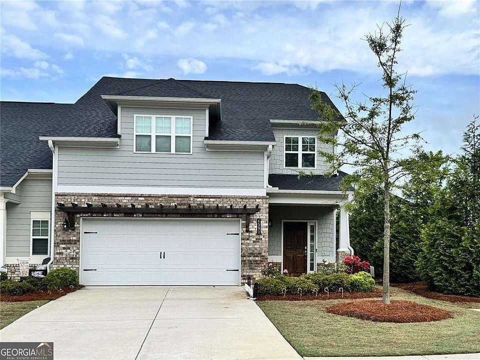 Built in 2021, this townhome shines from the curb with fresh, modern lines and carries that elevated style inside with beautiful, cohesive finishes throughout. Step into an airy, open-concept main level designed for real life and easy entertaining. The chef's kitchen overlooks the dining area and living room, so conversation flows as smoothly as the floor plan. You'll appreciate the oversized island with breakfast bar for casual meals, abundant cabinetry for effortless organization, and a true walk-in pantry that keeps small appliances, snacks, and bulk buys neatly out of sight. Upstairs, the primary suite is enhanced by a graceful tray ceiling and a spa-style bath with dual vanities, soaking tub, and a separate glass-enclosed shower. Two additional bedrooms and a full hall bath offer flexible options for family, guests, or a dedicated home office. A versatile loft adds even more breathing room for a second TV space, play zone, or Peloton setup-whatever your season of life calls for. Out back, the covered patio invites year-round enjoyment, enjoy morning coffee, evening grilling, or a cozy book on a rainy afternoon, while the low-maintenance yard keeps weekends free for fun. Daily convenience comes easy with a two-car garage, a level driveway for stress-free parking, and smart storage throughout. All of this sits just minutes from Downtown Acworth's shops and restaurants, close to everyday essentials, and with quick access to I-75 for an easy commute.