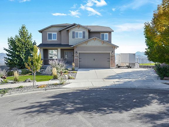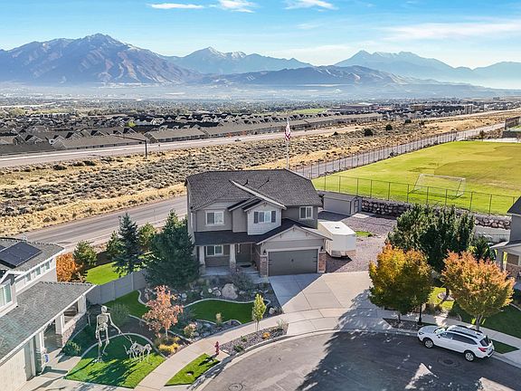 VIEWS, VIEWS, VIEWS! This stunning 4,109 sq. ft. home sits on a spacious .51-acre lot at the end of a private cul-de-sac, offering breathtaking, unobstructed views of the Wasatch Mountains and the Salt Lake Valley through 15 east-facing windows. Inside, the home has been completely remodeled with beautiful upgrades throughout, including new baseboards and trim, fresh three-tone paint, waterproof LVP flooring, new cabinetry and countertops, and elegant tiled shower surrounds with glass enclosures and smart Bluetooth LED Mirrors. The master suite features an adjoining retreat/nook, vaulted ceilings, a luxurious freestanding tub, a triple-head shower, a private water closet, and a large walk-in closet for ten. Enjoy romantic views of the valley lights and moonrise right from the comfort of your own bed. The open-concept kitchen, family, and dining areas are designed for entertaining, featuring a large island bar that seats five. There's also a formal living room for added flexibility with custom glass french doors. A custom mudroom bench with shoe storage is conveniently located off the garage. Step outside to your large private deck-the perfect spot to watch fireworks, enjoy evenings, or take in the panoramic scenery. The lower level includes two additional bedrooms, a full bathroom, a family room with more stunning views, and a walk-out to a covered patio for outdoor entertaining. This home is packed with thoughtful features and energy-efficient upgrades, including solar panels that save approximately $1,600 per year on power, an instant hot water system, two 120-gallon pressurized water storage tanks, a premium water softener with an easy garage fill chute, a pressurized reverse osmosis system connected to the kitchen and refrigerator, culinary and secondary water connections, laundry hookups for both gas and electric dryers, and a vented range hood. Additional perks include RV, boat and trailer parking, hot and cold outdoor spigots, and a 12' x 18' shed which sits on a 25' x 12' pad. The property also offers private gated access to Providence Point School grounds on evenings and weekends. Don't miss this rare combination of luxury, privacy, and unmatched views-this home truly has it all! Please see Agent Remarks for additional lot details.