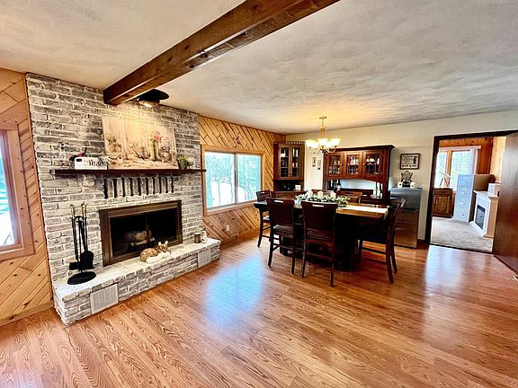 Check out the views of Sunset Lake and enjoy 100 feet of hard bottom shoreline! Ideally located, this 3 bedroom, 4 bath home sits on nearly 1/2 an acre. You will absolutely love the beautiful open floor plan offering breathtaking panoramic lake views from almost every room. All living on one level with a main floor master suite, laundry and large 4-season porch. Wood accents throughout! The lower level offers an oversized finished walkout with tons of room for guests, including the potential for a 4th bedroom. There is a 2-car detached garage with shop, front porch and 2 mud rooms. The fire pit enhances the ambiance of the natural surroundings and provides a great spot for evenings of entertaining. Septic is compliant. So much more to explore so schedule your showing before this one is g-o-n-e!