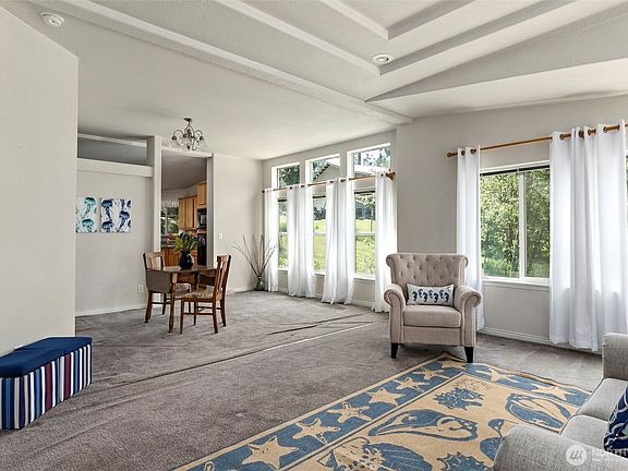 Your Whidbey Island sanctuary awaits! This triple wide Marlette manufactured home has plenty of room with 2,560 square feet of living space. It is well maintained with 3 bedrooms, 2.5 bathrooms and a gas fireplace. The kitchen is expansive with a newer flat cooktop, tile countertops and an oversize walk in pantry. The property is 5 acres with trees for privacy and open space for abundant sunlight. Enjoy projects and storage in the detached 2 car shop with a loft and an RV/boat carport as well as 4 sheds and an additional building that could be used as a retreat/playhouse. Great location not far from the Clinton-Mukilteo ferry, shopping in Freeland, and restaurants and art in Langley. The foundation is Earthquake Resistant Bracing System.