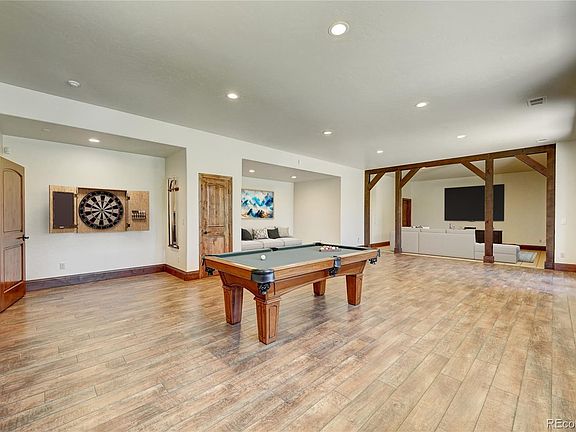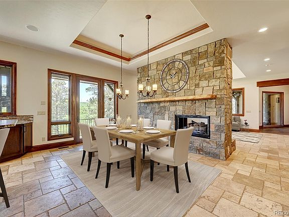 PILOT and CAR COLLECTER'S DREAM PROPERTY! This beautiful high-end custom ranch home is an entertainer's dream and is nestled on 10 acres among the ponderosa pines in the gated, 200 acre Everitt Airpark community. This secluded property has deeded access to the community airstrip and includes a 60' by 60' heated and insulated hangar that is 14 feet tall--it can fit motorhomes, RVs, car collections and light airplanes. Minutes to downtown Parker and the Southlands Mall. Very easy commute to DIA, Denver Tech Center, Skyridge and Parker Adventist hospitals. The community has gently rolling hills and plenty of ponderosa groves. This beautiful custom home was built around a massive covered outdoor loggia that overlooks the pine trees. Entertain outdoors under the spacious pavilion complete with a fireplace and built in BBQ. The main floor has travertine, slate, and hickory floors with plenty of rock, stone throughout. The kitchen is a chefs dream with Wolf appliances, double Sub-Zeros, large granite island and a wet bar with Eurocave. Downstairs includes a home theatre, massive recreation room and 3 spacious bedrooms. Zoned to have 3 horses. Oversized 4 car garage. Elbert county taxes with Douglas county schools!