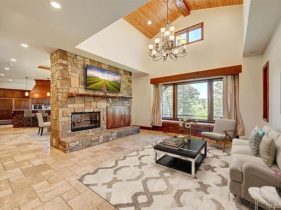 - Description: Double See Through Fireplace In Rock Wall, Juniper Mantle Pieces, Wet Bar With Dishwaher And Eurocave, Vaulted Cedar Ceiling, Built-In Cabinets For Tv And Storage.