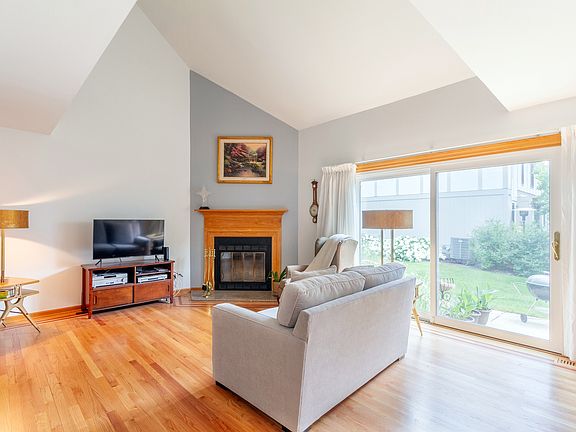 WELCOME HOME to this beautiful townhome in sought-after Castleford/Hearthstone. Fremd High School District! This home has been updated and upgraded throughout... nothing to do but move in! NEW ROOF July 2023! A cozy front porch offers great curb appeal. Enter to the foyer featuring new porcelain tile with inlay design. Gorgeous solid oak floors with mahogany inlay throughout the main level. Impressive two-story family room showcases an oak trimmed fireplace with granite apron. Adjoining the family room is a spacious dining area. Updated kitchen features maple cabinets, granite countertops, travertine tile backsplash with slate inlay, and new stainless steel dishwasher, stove, and microwave. A remodeled powder room with granite vanity top completes the main floor. Upstairs, you'll find two bright & spacious bedrooms, which share access to a beautifully redone full hall bathroom. Convenient 2nd floor laundry!! The basement offers even more living space, and was remodeled in 2022. Cedar closet under stairs for additional storage. Attached two-car garage with new steel entry door to the house. Private backyard patio surrounded by beautiful flowers ~ perfect for relaxing! So many more updates and upgrades: new AC and high efficiency furnace in 2022, newer windows and patio slider, fresh paint throughout, solid oak six panel doors, and more! Great location, walkable to parks, shopping, and dining. The association does allow rentals, so this could also make a great investment property! Don't miss this one!