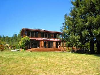 A beautiful, spacious house on 3/4 acre, with fantastic Anchor Bay weather, wonderful views of ridge, ocean, redwoods. Large fully fenced yard with flowers, lawn, redwoods & roomy back deck. Plenty of room w/3 bedrooms, 3 baths, plus 3 bonus rooms (downstairs media room, upstairs library/loft & heated workout room/workshop attached to 2-car garage.)Gated RV space. Solar hot water system. Lots of spots here for people, gardens, pets, and more!