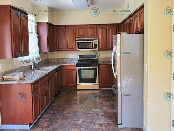 This great home is 1,725 sq ft with 4 Bedrooms and 3 Bathrooms. It features an open floorplan, a two-car garage, and a turf backyard. The kitchen features beautiful granite countertops and lots of storage space. The kitchen comes with all appliances including a refrigerator, dishwasher, gas range, and built-in microwave. From the kitchen, you have a view of the living room as well as access to the backyard and the 2 car garage! The spacious living room has lots of natural lighting, high ceilings, and a fireplace! The downstairs bedroom can also be used as a loft, office, or even formal living room and is located right next to the downstairs bathroom. The master bedroom upstairs has two big windows for beautiful natural lighting and includes two closets, one in the bedroom and a walk-in closet in the private master bathroom. The master bathroom attached, features a walk-in shower, separate bathtub, and double sinks. The rest of the upstairs bedrooms are spacious and include ceiling fans. The laundry room is also upstairs and includes the washer and dryer. This gorgeous home will not last long!! Call today!!