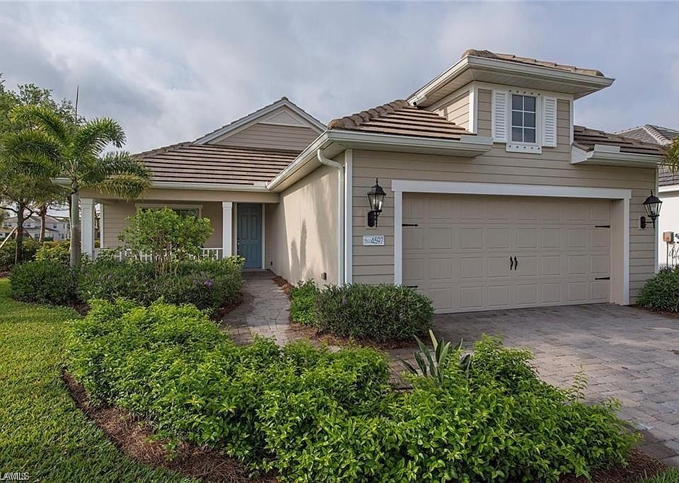 Move in ready and available annually or on a long term basis. Absolute stunner, open floorpan, former model, tons of high end upgrades, new, energy efficient appliances, new HVAC, new hardwood flooring, walk in his and her closets. This beautiful home is full of light and incredible views, a sparkling 3 bedroom, plus a large den that can be used as a bedroom, with top of the line upgrades and cool features. The home is large and open and spacious, with new hardwood floors, an outdoor kitchen and a high end grill, facing a beautiful lake, private, corner lot with amazing views. Wake up in the morning to a tranquil view of the water from your bedroom. Plenty of space for storage with an oversized 2+ car garage. Rented furnished and available on an annual 1+ year basis . Some of the furniture is not as pictured. The home is in one of the best locations of Ft Myers, in a highly sought-after area with quick access to the beach, Hwy 75, airport and all the shopping, restaurants and hospitals. Enjoy the privacy of the home, with a park next to it and a few feet to the clubhouse that has a state of the art gym and pool . The community has great amenities, tennis, trails, a dog park and more and is one of the newest and best gated communities in Ft Myers. Please allow 30 days for HOA application approval. You can call me with any questions.