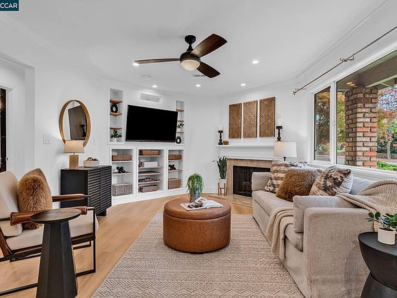 Beautifully updated and well maintained single story home in sought after Turtle Creek. Wonderful open floorplan with 3 bedrooms & 2 bathrooms, living room with gas fireplace and built in storage. Large dining room area. Stunning light filled updated kitchen w/ floor to ceiling white cabinets, quartzite slab counters, designer backsplash, upscale stainless steel appliances w/ gas stove, 2 ovens, microwave. Large island with bar for informal meals or perfect for gatherings. Slider off kitchen area opens to yard with large covered patio, perfect for alfresco dining. Lawn area for play, sports court w/built in basketball hoop & dog run. This is truly an entertainers delight. Backs to open space for privacy and views of the rolling hills. Primary bedroom with dual closets & slider to yard. Primary bath has dual sinks and spa like soaking tub. Home has recessed lighting, recently painted, newly installed flooring & contemporary baseboards. Tons of attic storage in the home and in the 2 car garage. Community has tennis & basketball courts, playground, greenbelts & trails. Close to Newhall park w/dog parks, Bocce & playfields. Close to shopping, restaurants, daycare, commuter routes & schools. Open house Tues. 12/2 10-1 and Sat & Sun 12/ 6 & 7 1-4