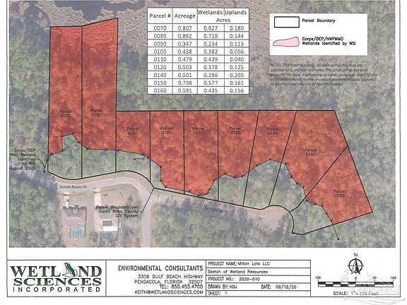 Wooded lot close to the bay in nice subdivision. Paved road with public water, sewer and underground utilities. Easy access to I-10 and Pensacola. Build your dream home in this private setting. Lot contains 0.156 acres of uplands according to Wetland Sciences documents.