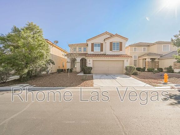 Spacious 4 bedroom 3 bath home with loft in booming Southwest! Situated in a tranquil gated community this residence offers 3 large bedrooms and loft upstairs, 1 bedroom and bathroom downstairs. Separate living room, dining room, and family room with fireplace. Open kitchen with island and large pantry. Bright and airy with vaulted ceilings and ample windows throughout. Huge primary bedroom with large bathroom, dual sinks, vanity, garden tub and walk in closet. Finished 2 car garage with built-in storage. Covered patio in back yard with mountain views! Close to shopping, restaurants, Allegiant Stadium, and freeway access!