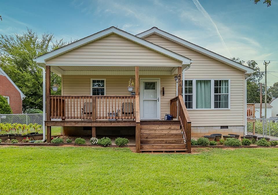 This home was built in 2019 and is in perfect MOVE IN READY condition. Everything is NEW.. stainless steel appliances, HVAC, roof, side deck, and fenced in backyard. Home has open floor plan with three bedrooms, one is a master with bath and large walk in closet. The master bath has double sinks with easy close drawers and entire home is wired for HDMI connections. The living area & kitchen area have beautiful vinyl snap lock waterproof flooring in a weathers gray wood grain and sliding glass doors that open up to the side deck. Enjoy sitting on the covered front porch on this dead end quiet street. This property is a short walk to the Canal Trails and the Roanoke River Park. Great price for a NEWLY BUILT, energy efficient, low maintenance home. Call your favorite Realtor to schedule a time to view this unique property.