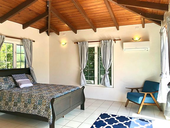 Freestanding 1 BR/1BA cottage on pastoral estate includes a gorgeous sea view at top of entry, split A/C throughout, complementary water, washer/dryer, living room furniture set, ample closet space & private, gated patio. There is a large aggressive dog on the property. Tenant must be OK with dogs. Pets considered with a pet fee.