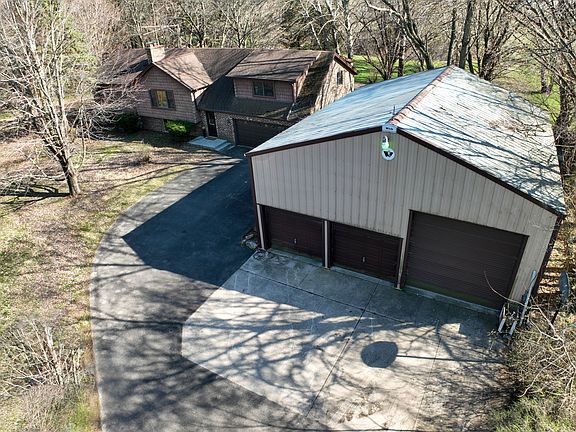 This one has it all! This split level home with over 3500 sq ft is nestled on 5.7 acres with 2 outbuildings and a pond. Upstairs boasts all new luxury vinyl floors, fresh paint, a newly updated (2023) kitchen with white 40" cabinets, new appliances, and quartz counters. There is also a large center island plus an eat in area with a sliding glass door which opens up to a deck with a view of the pond. The kitchen eating area is open to the spacious family room with brick wood burning fireplace and tons of natural light. Down the hall are three bedrooms all with nice space and views of the beautiful grounds and a shared full bath. On the other side of the main floor and up a few stairs, great privacy, is a huge master suite area with walk in closet, a second closet and full bathroom. The lower level English basement with above grade windows, boasts a recreation room with another stone fireplace. There is also a flex room that is open to the rec room which has plumbing for a kitchenette or wet bar. a half bath, utility room and laundry room. Lots of room to roam in and outside. All new flooring throughout house (2023) New kitchen and appliances 2023 , fresh paint throughout 2023, A/C and Furnace replaced 2021, Interior / Exterior drain tile 2020, Siding and Roof 2006, New Windows 2005