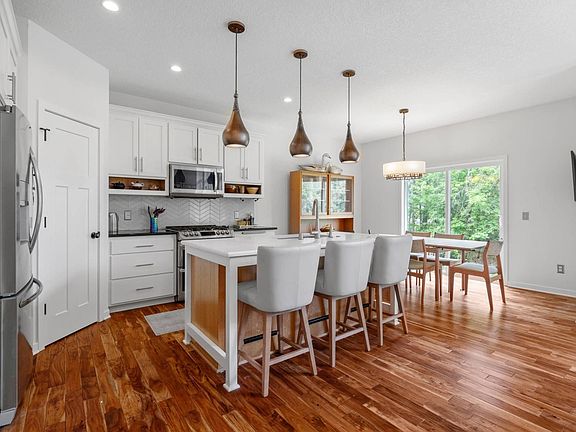 Lots of windowsOpen and bright planBeautiful finishesBig wooded lot