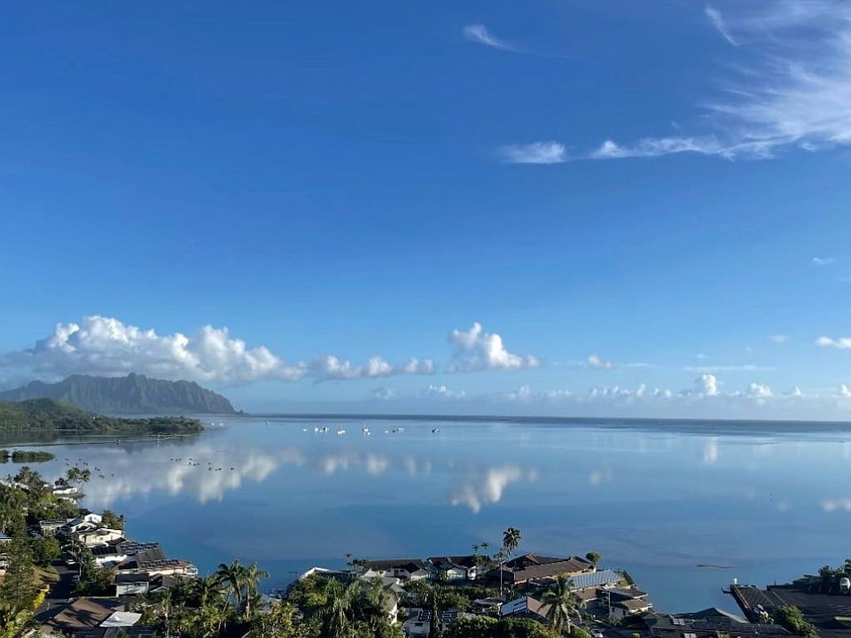 Panoramic Ocean Views & Koolau Mountain Views Abound all around the comfort of this magnificent fully furnished townhome. End unit with private entrance and front lanai. 3 beds 2 baths fully furnished, Only 7 min from Boat Dock or 12 min to Koolau Beach Park with China Man's hat or walk to Windward Mall and shopping. Kialua town & world class Lanikai Beaches is 18 min, K-bay Marine Base 15 min, Quick freeway access 25 min to Honolulu & Airport on H3. North shore is only 45-50 min away with opposite traffic. Enjoy the windward side 7-8 degrees cooler with daily breeze, Lush green mountains, daily rainbows,