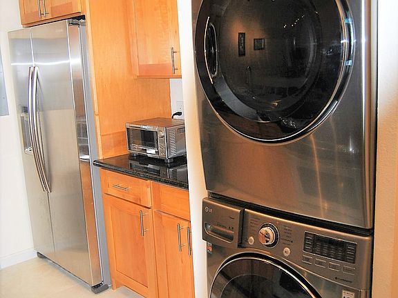 Renovated, clean unit with newer floors. This one-bedroom, one-bath condo has a great floor plan with the bedroom and living room separated, and it includes TWO parking stalls. Fully renovated with all wood cabinetry and granite countertops in the kitchen and bathroom. Ceramic tile and luxury vinyl flooring throughout, and no popcorn ceiling. AC unit. High-end appliances include a convection oven, LG washer/dryer, refrigerator, dishwasher, garbage disposal, and an efficient on-demand tankless water heater. Large storage unit included. Guest parking stalls on site. No pets and no smoking. Available November 13, 2025. Security deposit required. Rent is $2,000.00 (includes tax) Water, sewer, and parking are included. NO SHOWING UNTIL THURSDAY OCTOBER 30. Pacific Core Properties LLC - RB21977