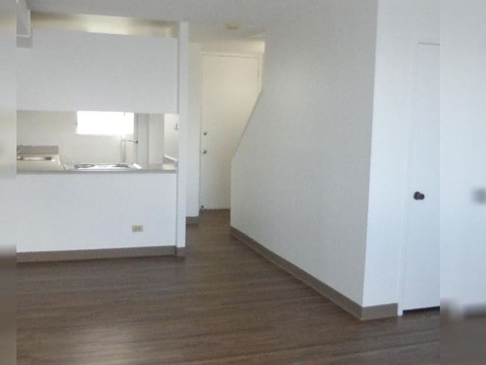This split-level unit features two bedrooms and one bathroom upstairs, with the kitchen and living room conveniently located downstairs. The unit comes partly furnished and includes a washer and dryer for added convenience. One assigned open parking stall is included.