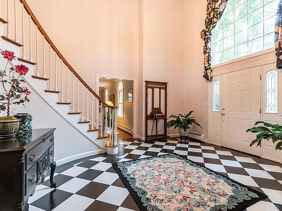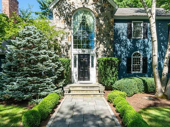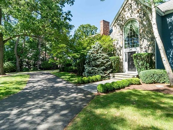 Majestic 4 bedroom colonial in one of Sudbury's premier neighborhoods. Elegant foyer with bridal staircase, formal living room with arched windows, h/w floors, dental moldings, opens to grand size d/r with bow window, h/w floors & detailed moldings. Library with cherry floors & custom cabinetry, fireplace & exterior access to deck. Eat in kitchen with h/w flrs, center island & granite countertops, opens to cath f/r with dramatic stone hearth, wet bar, h/w floors triple slider to deck and second staircase. First floor laundry/mud room & powder room complete the first level. Master suite with cath ceiling, plantation shutters, walk in closet, remodeled master bath with balcony, oversized shower & dual vanity. Three other large bedrooms two with jack & jill bath, 4th with it's own access to 3 full bath with dual vanity/granite. Lower level perfect for guests or nanny. Spectacular grounds, walking distance to play fields, toddler playground, bb courts, indoor pool. Fabulous home