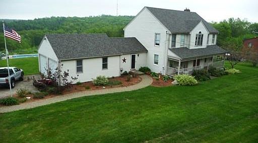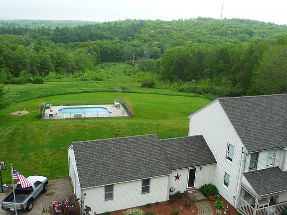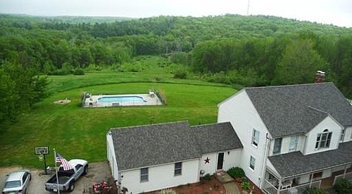Farm Porch Colonial with beautiful views on 2+ acres. You can see for miles. This beautiful home features large cabinet packed kitchen open to comfy living room with fireplace, formal dining room, mud room and laundry with cathedral ceilings, half bath, and 1st floor bedroom or use it as formal living room or office. Second floor features oversized master bedroom with cathedral ceilings, large walk in closet, and master bath with jetted tub surrounded by a wall of windows over looking the beautiful view, and 2 more spacious bedroom and additional full bath. Sit on your back deck and enjoy your 2+ cleared acres or enjoy the surroundings from your in ground pool. Many updates include newer heating system, newer roof, many new windows, new pool liner with newer pump. Home still needs more siding and window work, but well worth the investment.