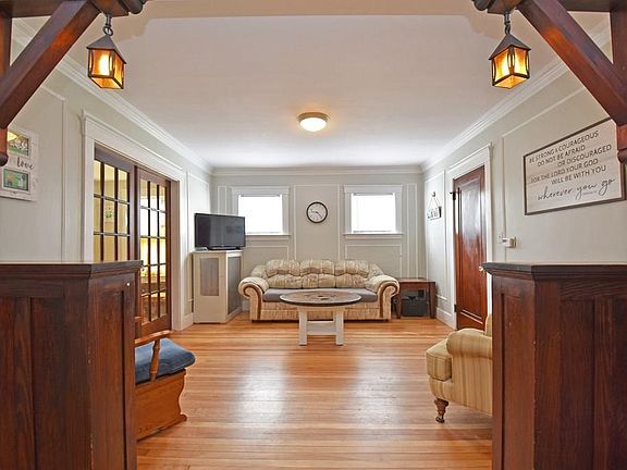 Deadline for all offers Monday (9/21) at 3pm! Set back from the road, this cute & cozy 3-bedroom Cape is perfectly situated on over an acre & awaits new owners! Enter the front door & instantly feel at home! Inside you will find an inviting living room w/ gleaming hardwood floors & french doors that open to a sunroom - perfect for additional seating, a home office or reading nook, an open dining area w/ a built in hutch, a cabinet packed kitchen complete with a walk in pantry, a first floor master bedroom & a full bath! A bonus room, access to the back balcony, another full bath & 2 additional bedrooms both with large walk in closets are on the 2nd floor. Venture outside to your private outdoor yard complete with a front porch, a back deck, tons of room for outdoor activities, a spacious 2 car detached garage w/ a workshop area & a long paved driveway for plenty of off-street parking. This home has it all! Welcome Home!